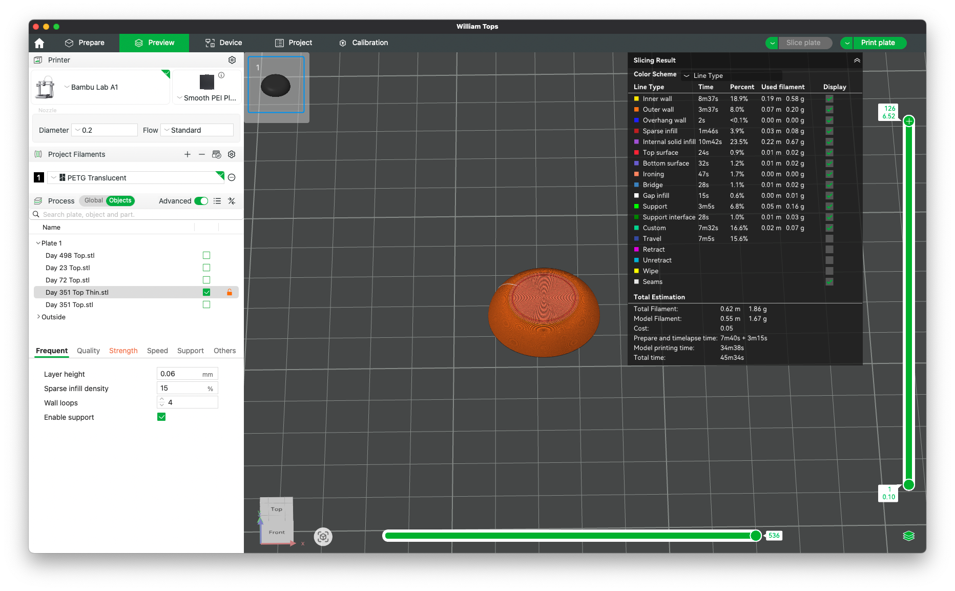 For the PETG lenses printing and the PLA Matte - Charcoal mount printing.