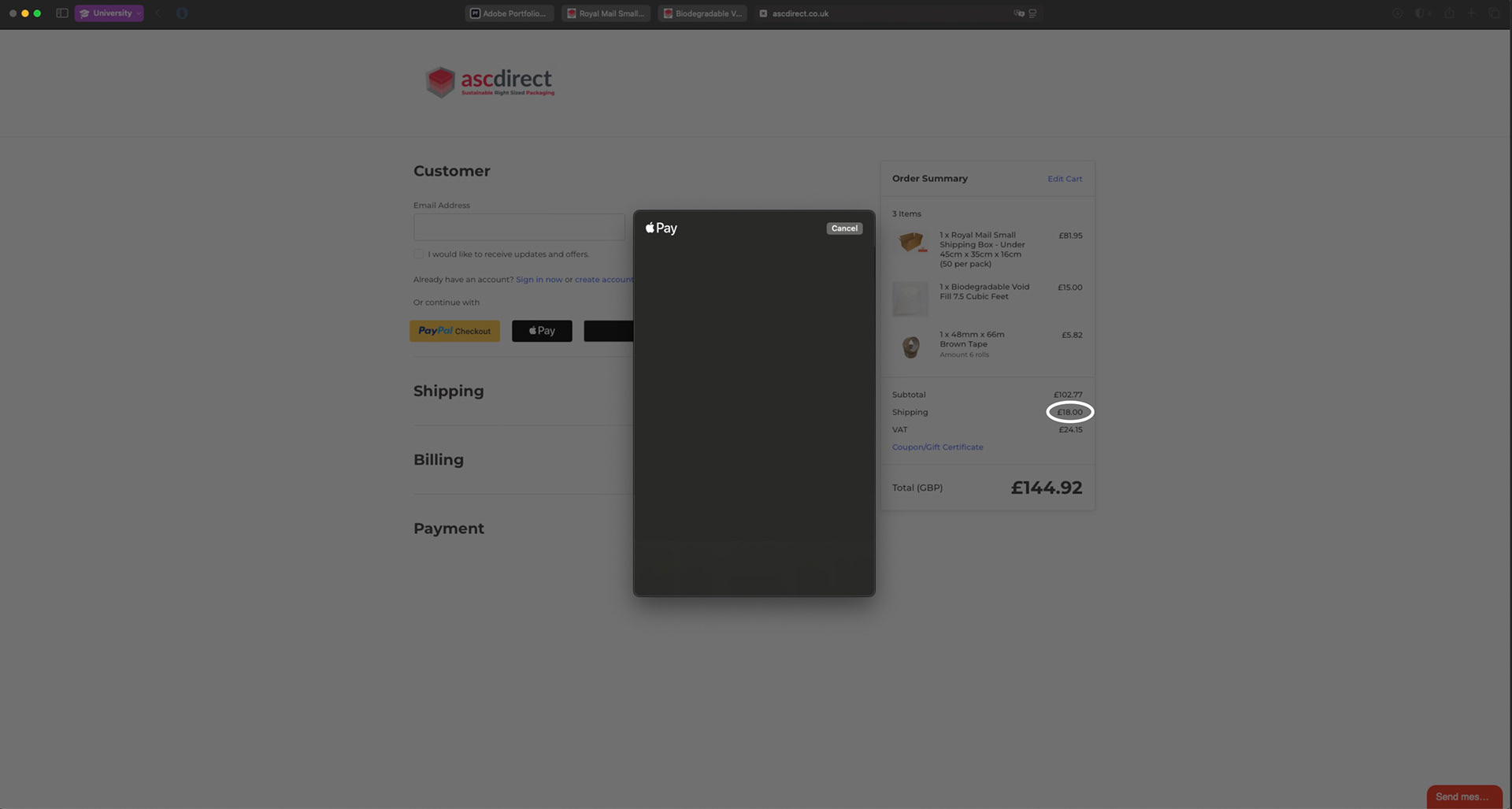 Free shipping on orders over £45. So shipping is £0. Since the filament is out of stock, I cannot add it to show an accurate total cost of the basket, but evidence of the price was included previously.